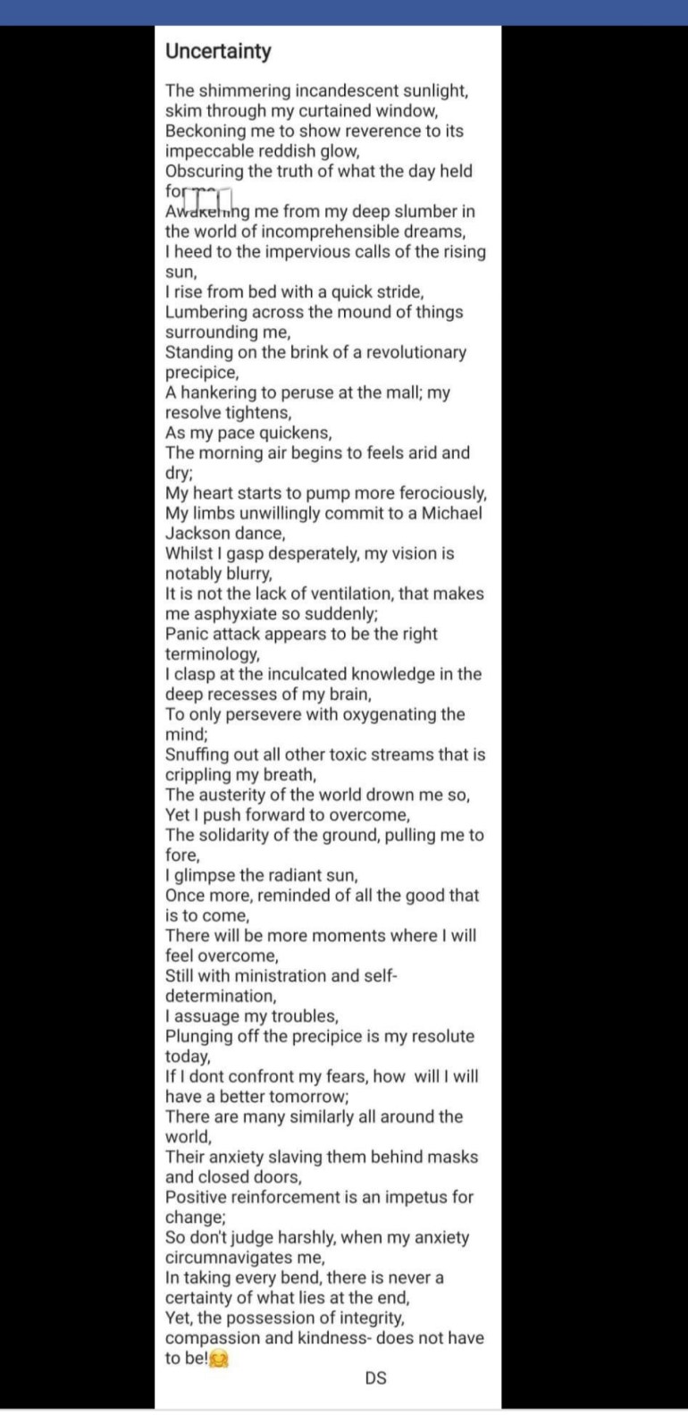 Uncertainty 0 23rd Jun 2019 Written by Life is a Journey Share this: Click to share on X (Opens in new window) X Click to share on Facebook (Opens in new window) Facebook Like Loading... Related